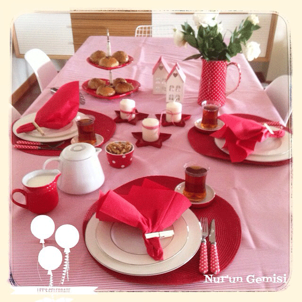 Ertesi gün anneleri Bugün bayram, erken kalkın anneler şarkısı eşliğinde onlara kırmızılı beyazlı bir sofra hazırladı.