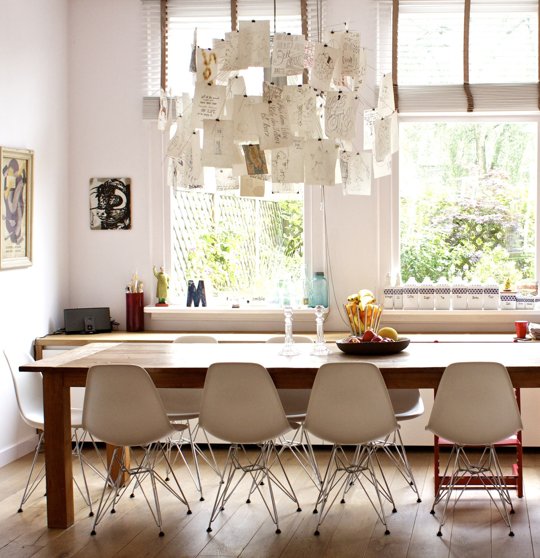 Bence evdeki en güzel detaylardan biri üstü yazılı kağıtlardan oluÅŸturulmuÅŸ avize…