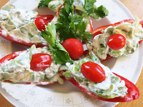 Biraz limon, biraz zeytinyağı, ve süzme ya da süzmeye yakın (Evde tlbentle süzmeleştirilmiş) çok sulu olmayan bir yoğurtla nefis bir yaz akşamı salatasıdır.