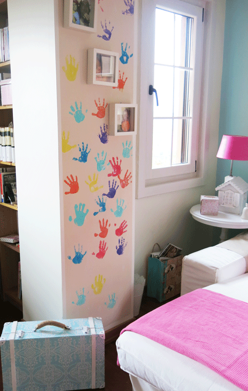 Bu arada oda boyanırken kızlarım daha küçükken duvara çıkarttığım el izlerini boyattırmayıp, öylece muhafaza ettim: