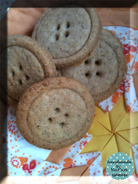 Ben zencefilli tarçınlı kurabiye yaptığım için düğmelerim biraz kahverengi oldu, eÄŸer siz daha açık renkli düğmeler tercih ederseniz farklı bir tarifle hazırlayabilirsiniz düğmelerinizi…