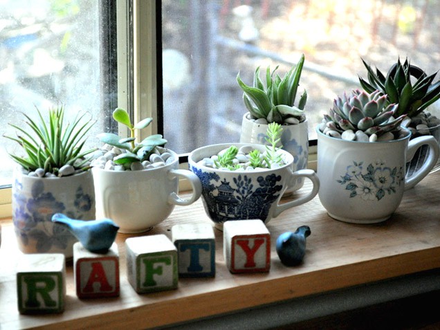 Seradan veya yapı marketten alacağınız sukulent tarzı bitkileri saksısından çıkartıp, dibine bir miktar toprak eklediğiniz fincanınıza dikin. Üzerini dekoratif taşlarla süsleyin. (Yazın plajdan topladıklarınızı nereye koyduğunuzu hatırlıyorsunuzdur umarım?)