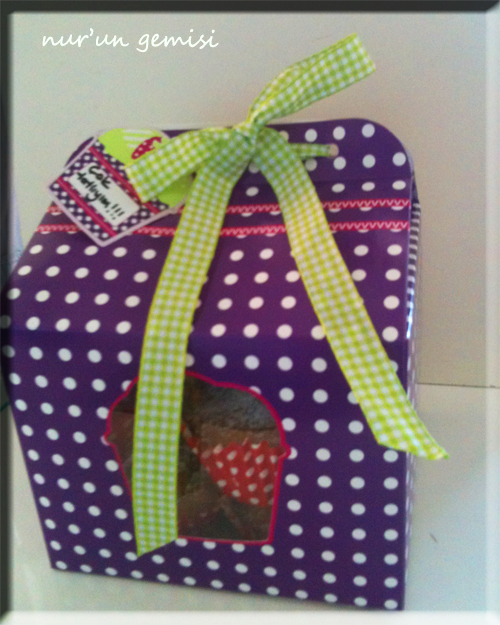 Bu kek taşıma kabı üstüne yazı yazacağınız minik notluk ve kurdelesiyle beraber set halinde satılıyordu, hepsi beraber keklerime ayrı bir anlam kattılar.
