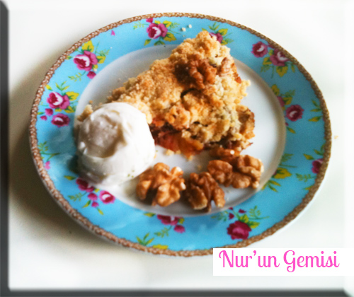 Üst kısmı iyice kızarana dek 175 derecede piÅŸirip, yanına krema veya dondurma ile servis ediyorsunuz…