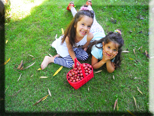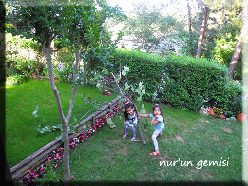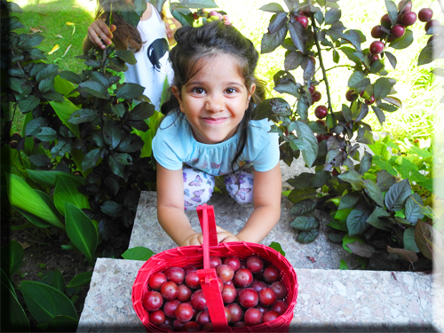 Neva ve Merva ile beraber erik ağacındaki erikleri topladıktan sonra kendileri objektiflere gururla poz verdiler, tabii eriklerle beraber!