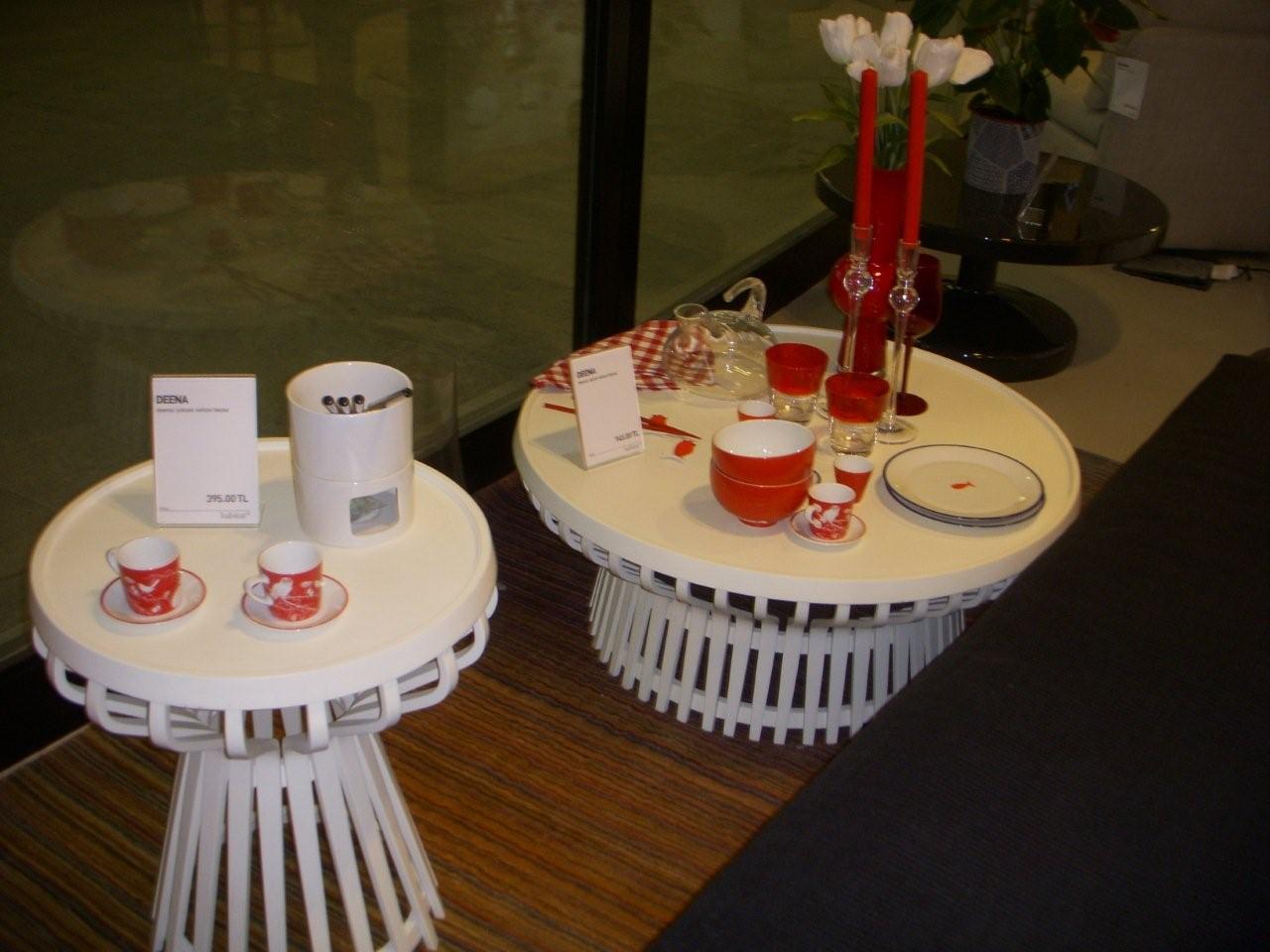 Beyaz orta sehpa Habitat’ın beÄŸendiÄŸim ürünlerinden, fiyatı da 745 TL.(Küçük sehpa 395 TL)