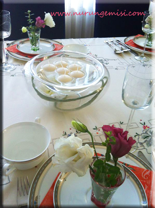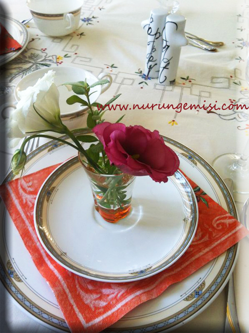 Misafirleri geldiğinde herkese tek tek çiçek koyuyor masaya, bence süper bir karşılama oluyor!