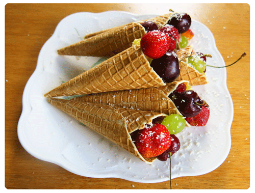Bir yandan meyve, bir yandan da çıtır çıtır kornet, mmmh!