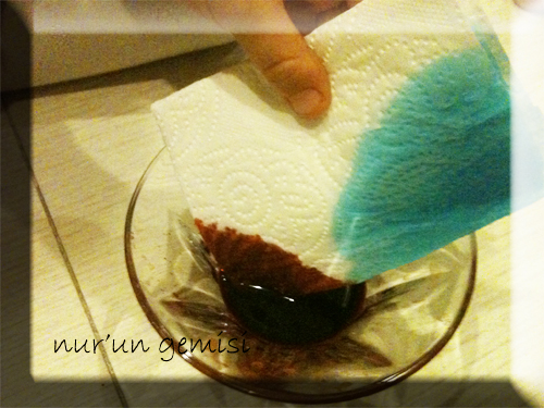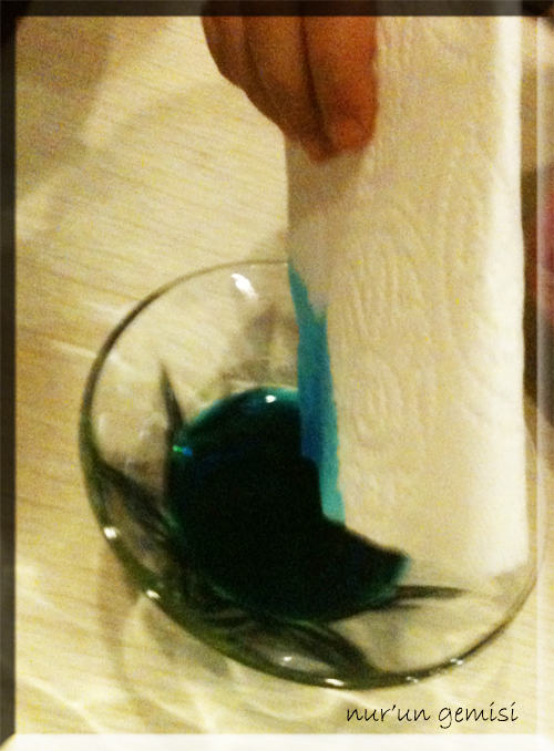 Kağıt havlumuzu 8’e katlıyoruz, uçlarından suya batırıyoruz.