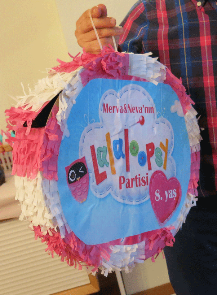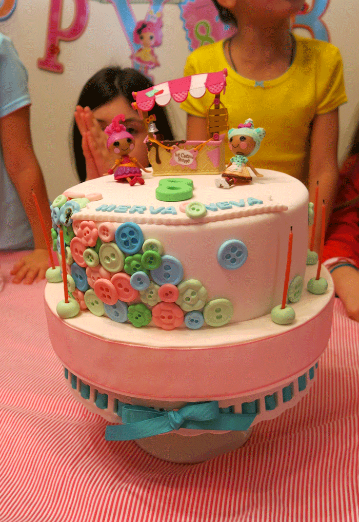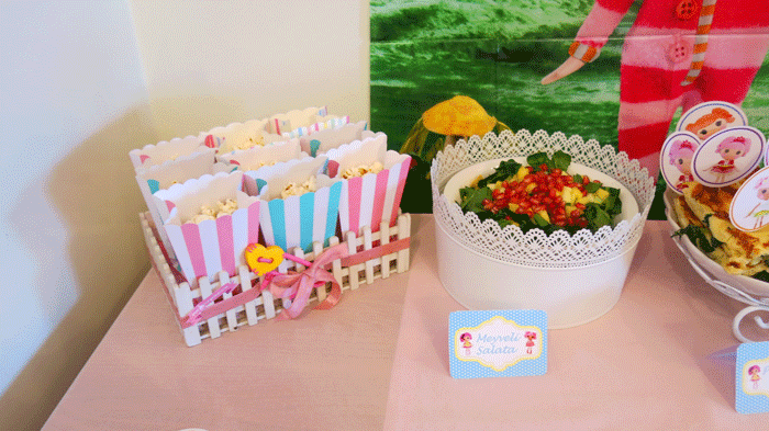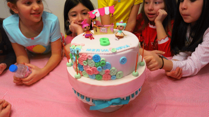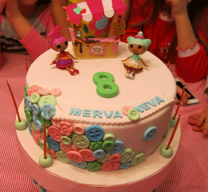 Bu partiyi yapma kararını önceden aldığımız için bir süredir yakınlardan lalaloopsy paketlerinden çıkan düğmelerden toplamıştım, bu detayları partide kullandım.