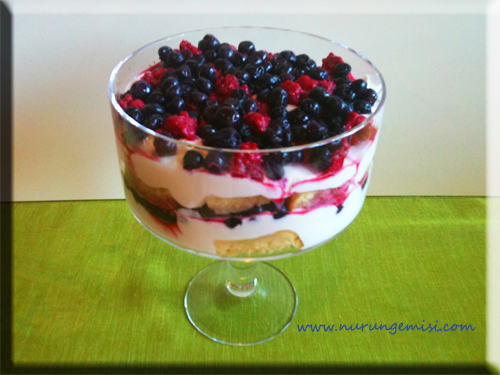 Bir dahaki sefere pandispanya ve pastacı kreması ile hazırlamayı düşünüyorum, o zaman trifle’ım klasik bir yaÅŸ pastanın farklı bir sunumu olacak, eÄŸer beÄŸenirsem onu da paylaşırım