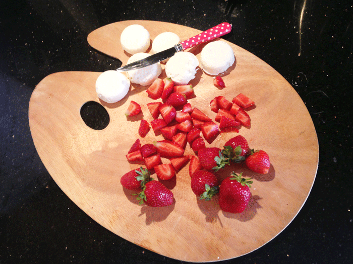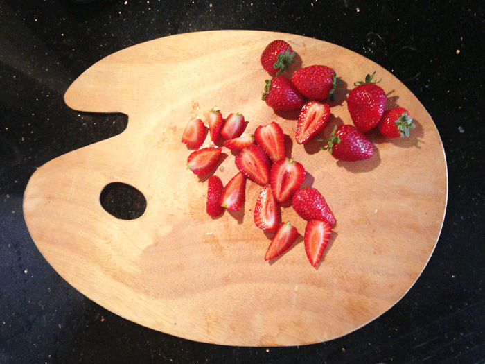 Çilekleri dilimledim.