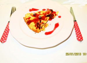 Çok hafif un serptikten sonra süzdüğünüz vişneleri yerleştirin.